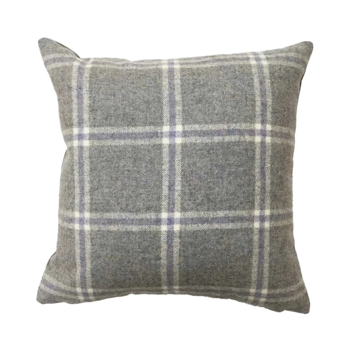Tartan mauve and grey cushion cover from Homescapes lovingly handwoven from 100% wool for a super-soft and cosy cushion cover for sofas or beds.