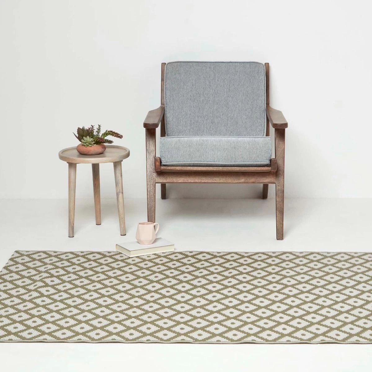 May Geometric Olive Green Outdoor Rug