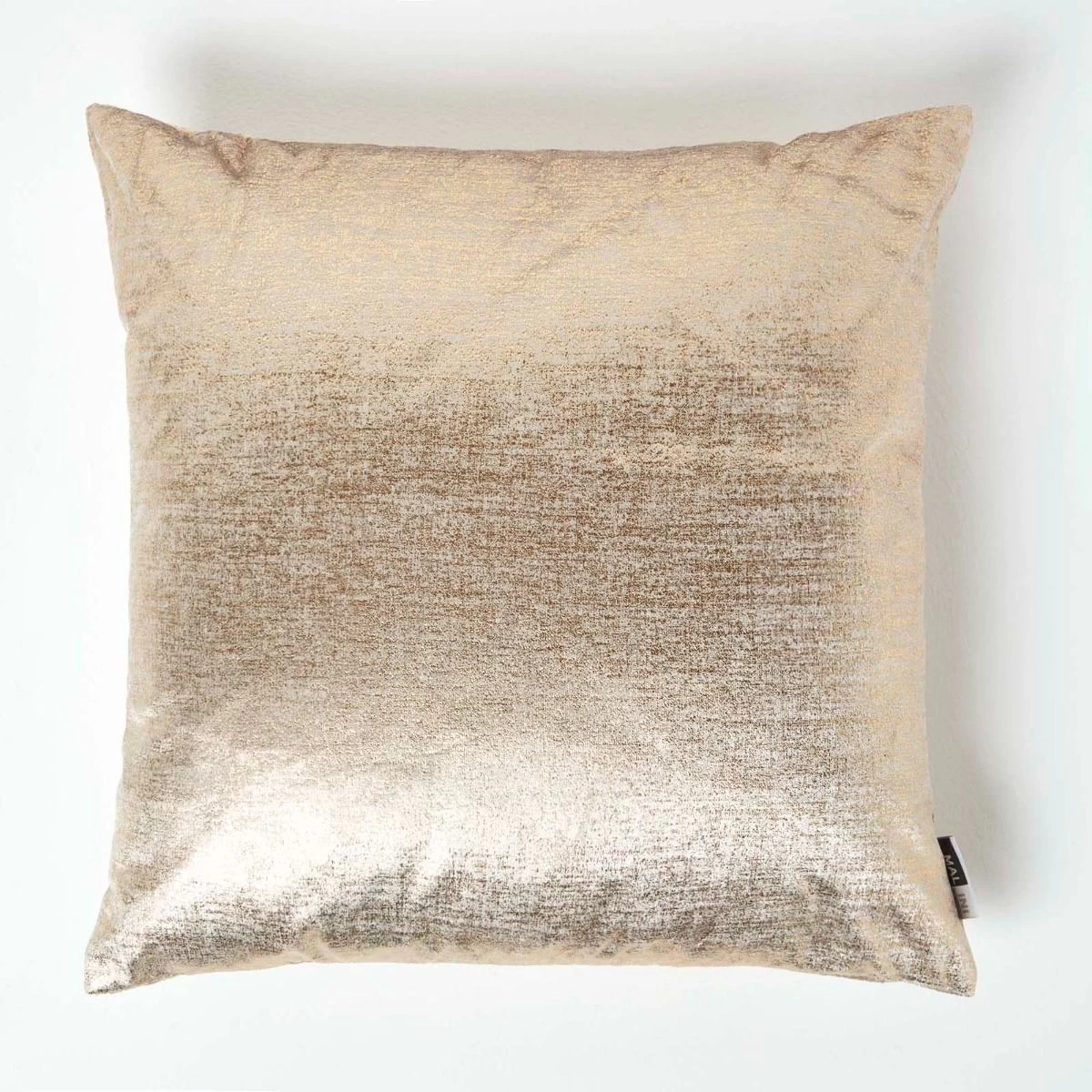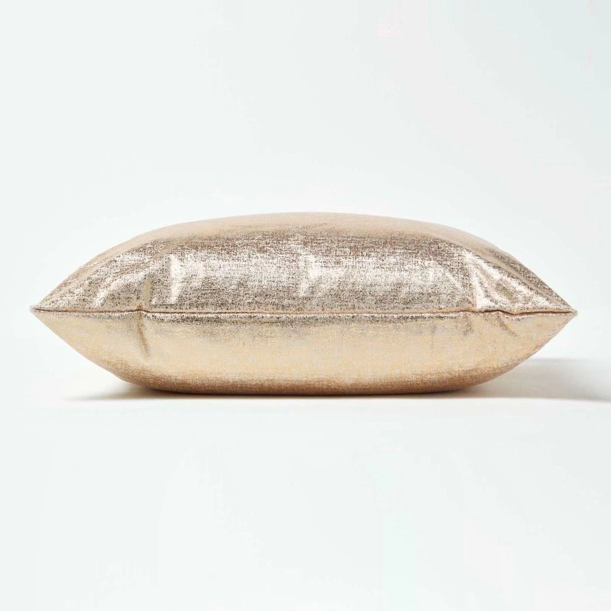 An on-trend plain gold cushion that will make an impact in any room. This metallic, reflective style cushion is expertly woven and will complement both traditional and modern interiors.