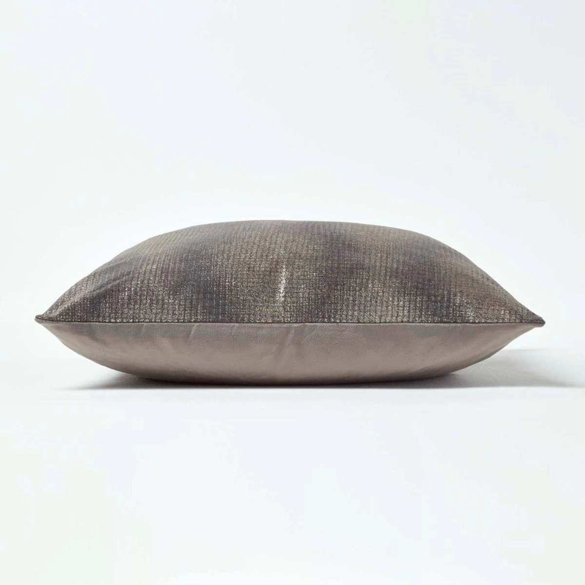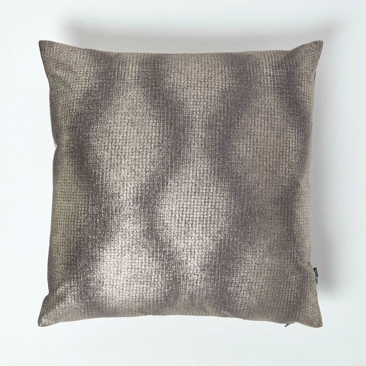 Metallic silver grey cushion with a snake-skin effect design, a large decorative cushion that will add a touch of style to any sofa, feather cushion insert included.