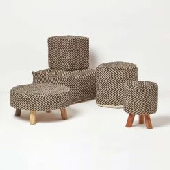 Homescapes jute black and natural diamond pattern fabric footstool with wooden legs, this modern designed stool is ideal for the living rooms and studies.