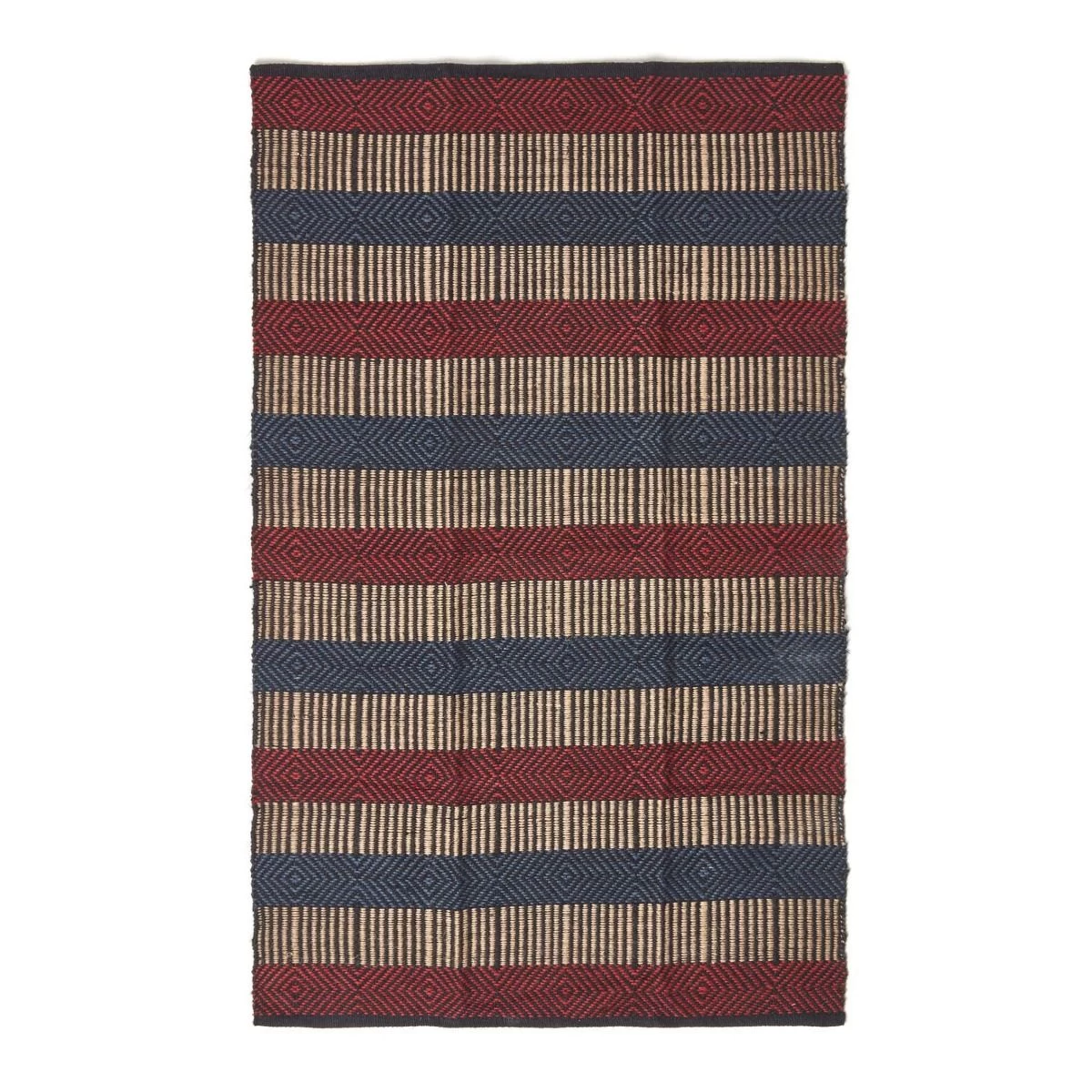 Multicolour Striped Hand Woven Geometric Patterned Jute Rug