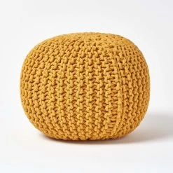 Mustard Knitted Pouffe from our well designed large collection of pouffes and cubes is made up of 100% cotton. This chunky fashionable range of pouffes is hand knitted with polystyrene beads filling. These are reasonably priced and are available in two classic shapes and ten vibrant colours. Without doubt, these multipurpose pouffes prove to be an indispensable home accessory.