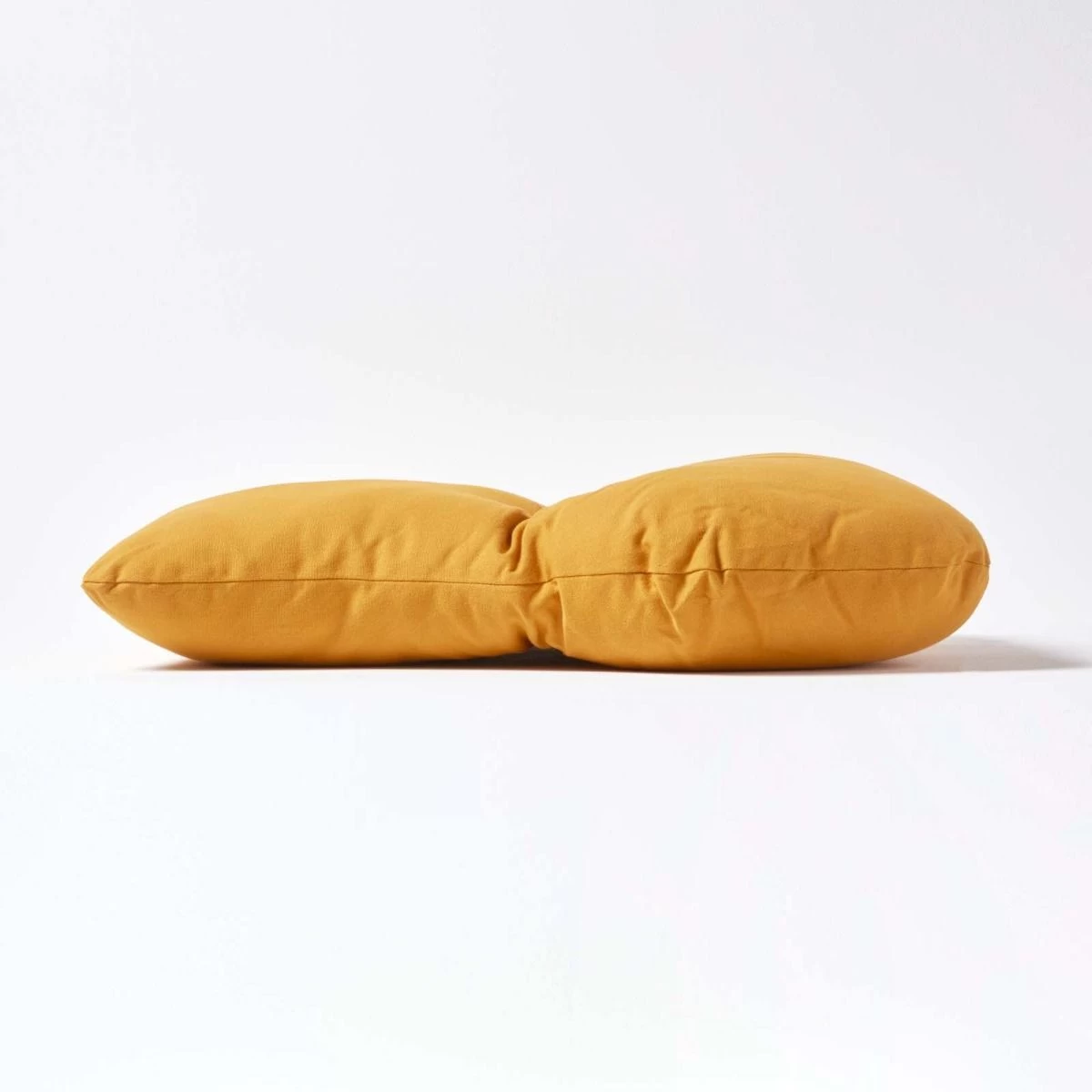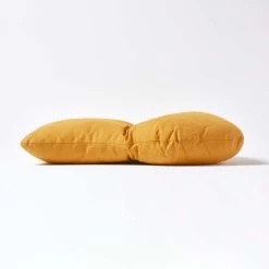 Mustard yellow lumbar support cushion, filled with supportive Microfibre that retains shape to help with posture when sitting. Ideal for armchairs, desk chairs and beds.