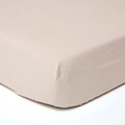 Fitted linen sheet in Natural from Homescapes’ linen bed linen collection. Woven from a blend of French linen and premium combed cotton, in three Euro sizes.