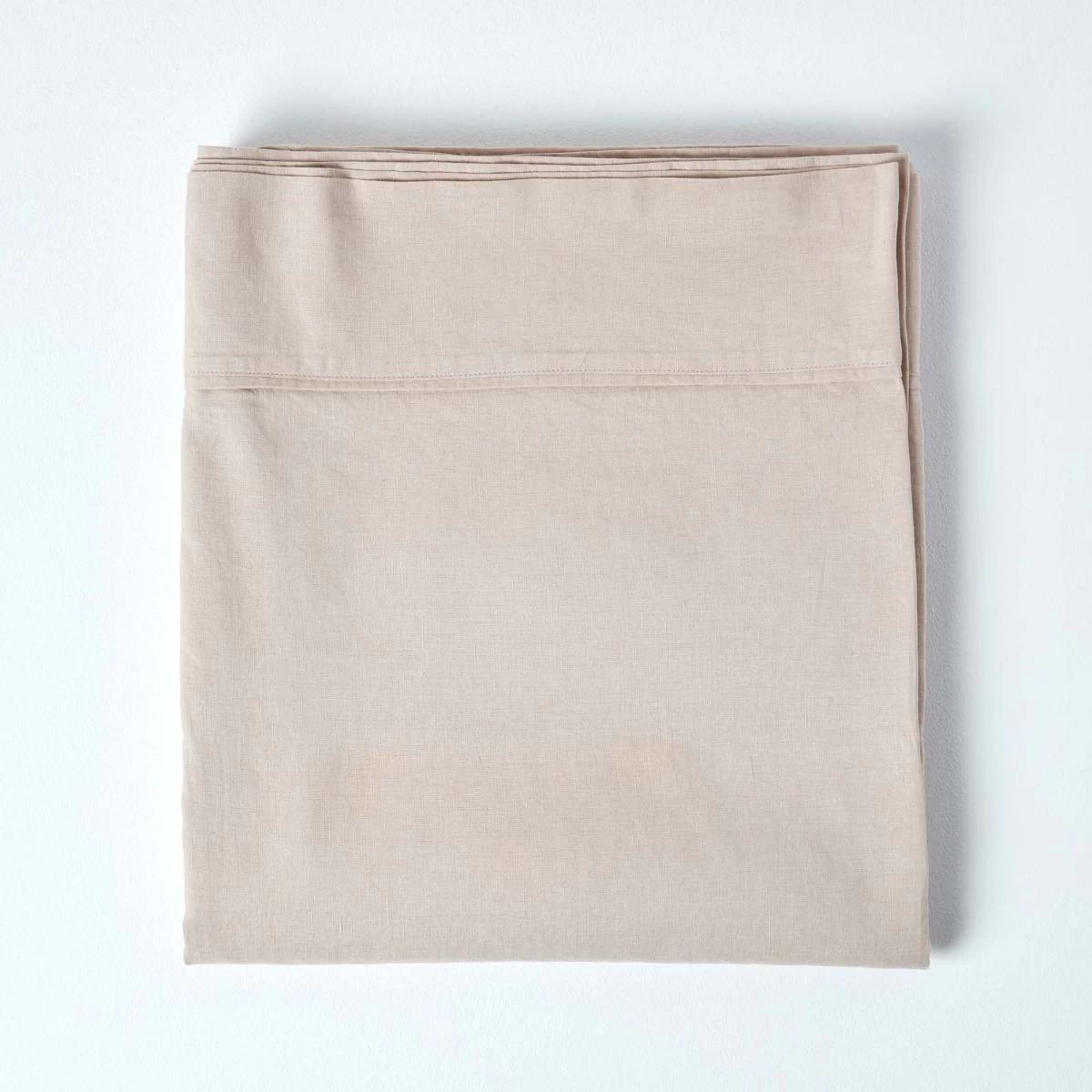 Luxury linen flat sheet in Natural, woven from a blend of French flax linen and premium combed cotton from Homescapes’ linen bed linen range for Continental sizes.