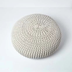 Large Natural knitted pouf from our well designed large collection of round pouffes. This chunky fashionable range of pouffes is hand knitted with polystyrene beads filling. These are reasonably priced and are available in two classic shapes and 5 vibrant contemporary colours. Without doubt, these multipurpose large pouffes prove to be an indispensable home accessory. You can use them as decorative occasional seats, stylish foot stools or comfortable floor cushions in your living room, bedroom or nursery. Or why not treat your beloved cat or dog with a new place to cuddle up? These large floor cushions and pouffes will certainly withstand their claws thanks to the robust materials used.