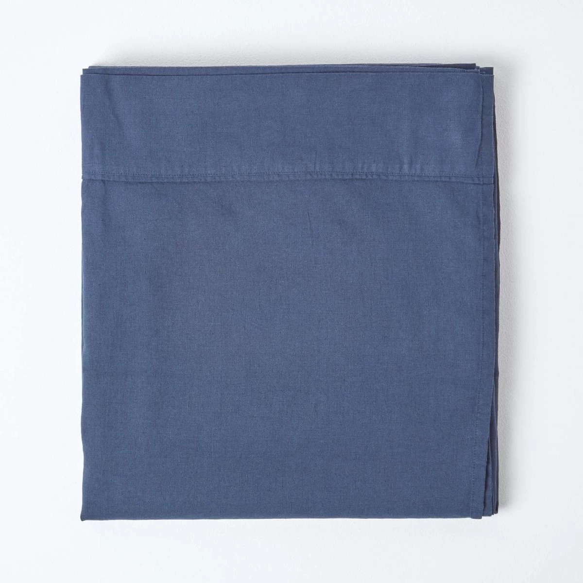 Luxury Navy blue linen flat sheet in three Euro Continental sizes. Woven from a blend of French linen and premium combed cotton from the linen bed linen range.