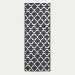 Introducing a relaxing and tranquil feel to your outdoor seating area, large outdoor rugs make a statement in any garden space and the Nola rug is available in 4 sizes including an extra-long runner, perfect for hallways, entrance halls, passageways and longer gardens. A modern black and white geometric design, this rug is versatile and can also be used indoors, when camping or picnicking. Easy to clean it can be brushed or hosed off using mild soapy water. When opening your rug, it is recommended that you lay it front side down for a few hours so that it will sit flat. If you choose to use this rug indoors, you may wish to use an anti-slip mat under your rug to prevent it from slipping out of place.