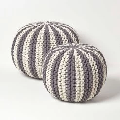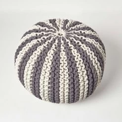 Grey and White Knitted Pouffe