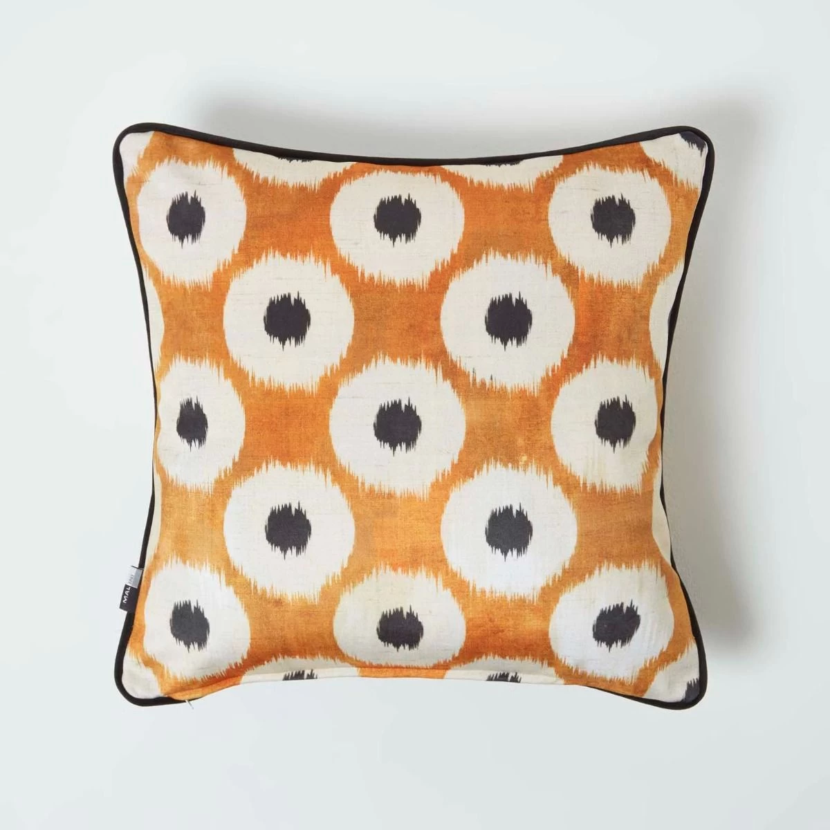 A vibrant orange scatter cushion, perfect for bringing a pop of colour into any room. Complete with an abstract spot design, this bold cushion is completely reversible and generously filled with super microfibre to create a cosy home accessory. Style on couches, armchairs or even in the bedroom, and pair with the Homescapes range of plain cushions for a complete look.