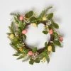 Vibrant orange door wreath that will add that colourful touch to your front door this autumn. This vivid orange, yellow and green outdoor wreath features an array of lifelike maple leaves, berries and pumpkins.