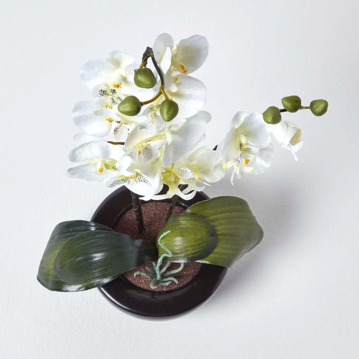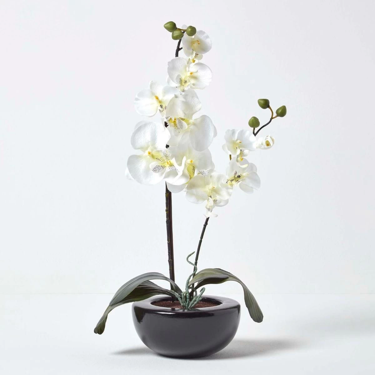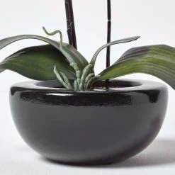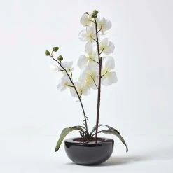 These elegant oriental style Cream Orchids with silk flowers in a black bowl would make a lovely feature in any room, be it at home or at your workplace. The vibrant silk flowers with life like leaves make these stunning replica plants as good as any real plant. Orchids are timeless and this arrangement comes as an excellent alternative to growing and maintaining real plants. What a beautiful way to bring life to your interiors!