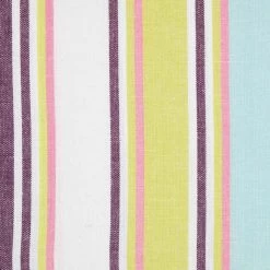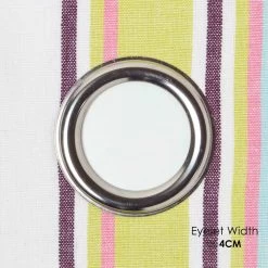 The various shades of green, white, pink, purple and blue used in these Osaka Green Stripes Eyelet Curtains all complement each other perfectly and will provide a fresh and bright look to any room. The modern design of these curtains is sure to renovate the interiors of any room, regardless of whether the decor is modern or traditional. These contemporary Osaka Green Stripes Curtains are one pair in Homescapes impressive range of pure cotton designer curtains in many charming designs and soft prints. Our modern ring top or eyelet curtains are made with heavy cotton fabric and a wide range of colours, which allows our curtains to coordinate well with almost any interior setting and the vivid colours used are able to uplift the mood of any room. These curtains are suitable for all spaces, and would fit perfectly in the kids rooms due to their refreshing print. Please note, these curtains are not lined and so they will have to be used in conjunction with a black out curtains in order to make them light proof. Coordinating fabric (to make your own soft furnishings), cushions and floor cushions are also available with Homescapes.