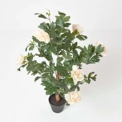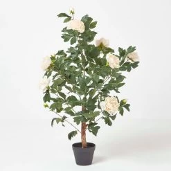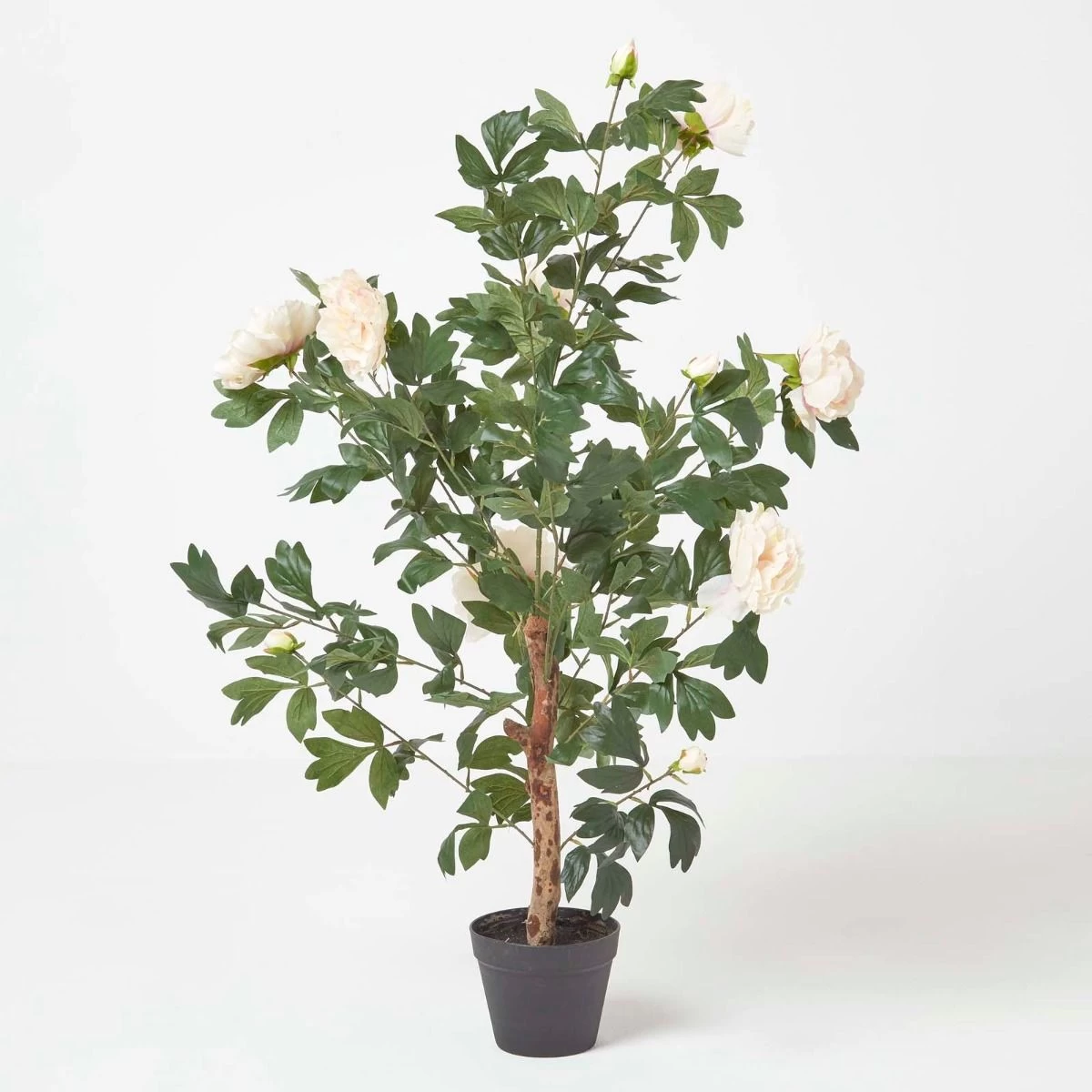 Arriving inside a simply black pot, you can easily place this artificial peony tree inside your own planter. Measuring 100 cm tall, it is the perfect height to display in your living room, hallway or the office. Part of Homescapes’ huge collection of artificial flowers, plants and trees, it has been handcrafted by skilled experts to ensure botanical accuracy. Wipe away dust when needed with a soft cloth.