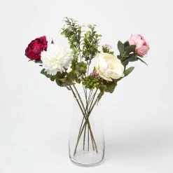 With each petal handcrafted from silk-like polyester, this botanically correct faux arrangement of peony and pom will light up any interior. In vibrant shades of pink and green, this beautiful long-stemmed bouquet can be used for weddings, mother’s day, Christmas gifts and more.