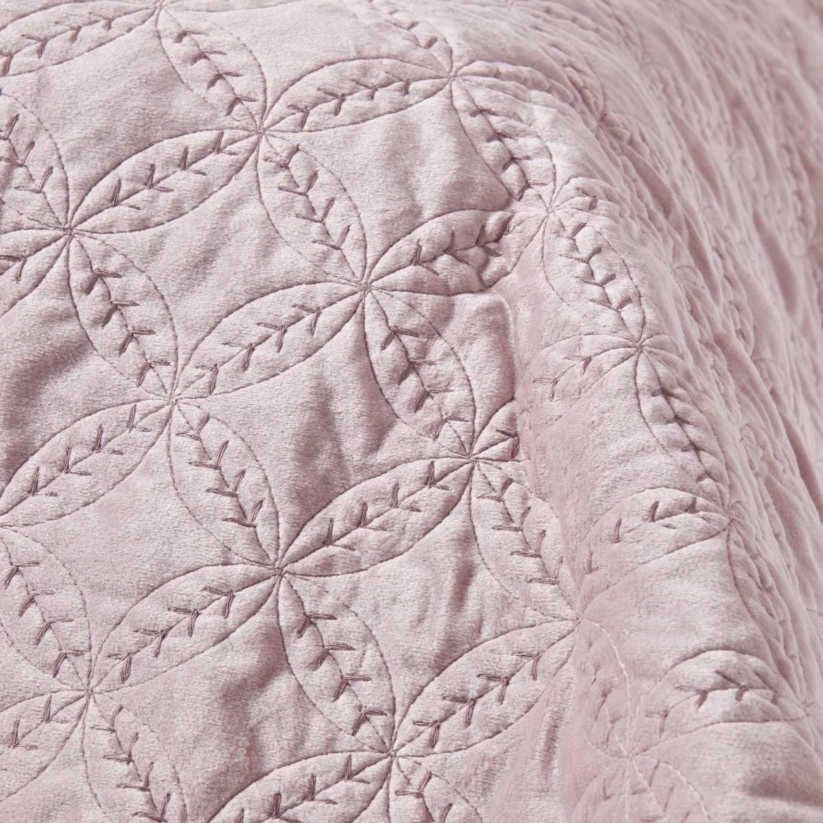 A dusky pink quilted bedspread that will add a super soft and luxurious feel to your bedroom. With a geometric quilted style, this soft and luxurious bedspread will add texture and dimension to your home. Embroidered into this throw is a delicate eternity ring pattern adding even more style. Use on your bed as decoration or as an extra layer of warmth during cold night’s.