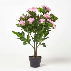 A low cost and low maintenance way to bring an outdoorsy look inside, Homescapes Pink Hydrangea Artificial Plant is ideal for any room in your home. Standing at 85 cm tall, this pretty botanical decoration is the perfect size to fill an empty space in your hallway, bedroom, living room or dining room, or to liven up a minimalistic colour scheme.