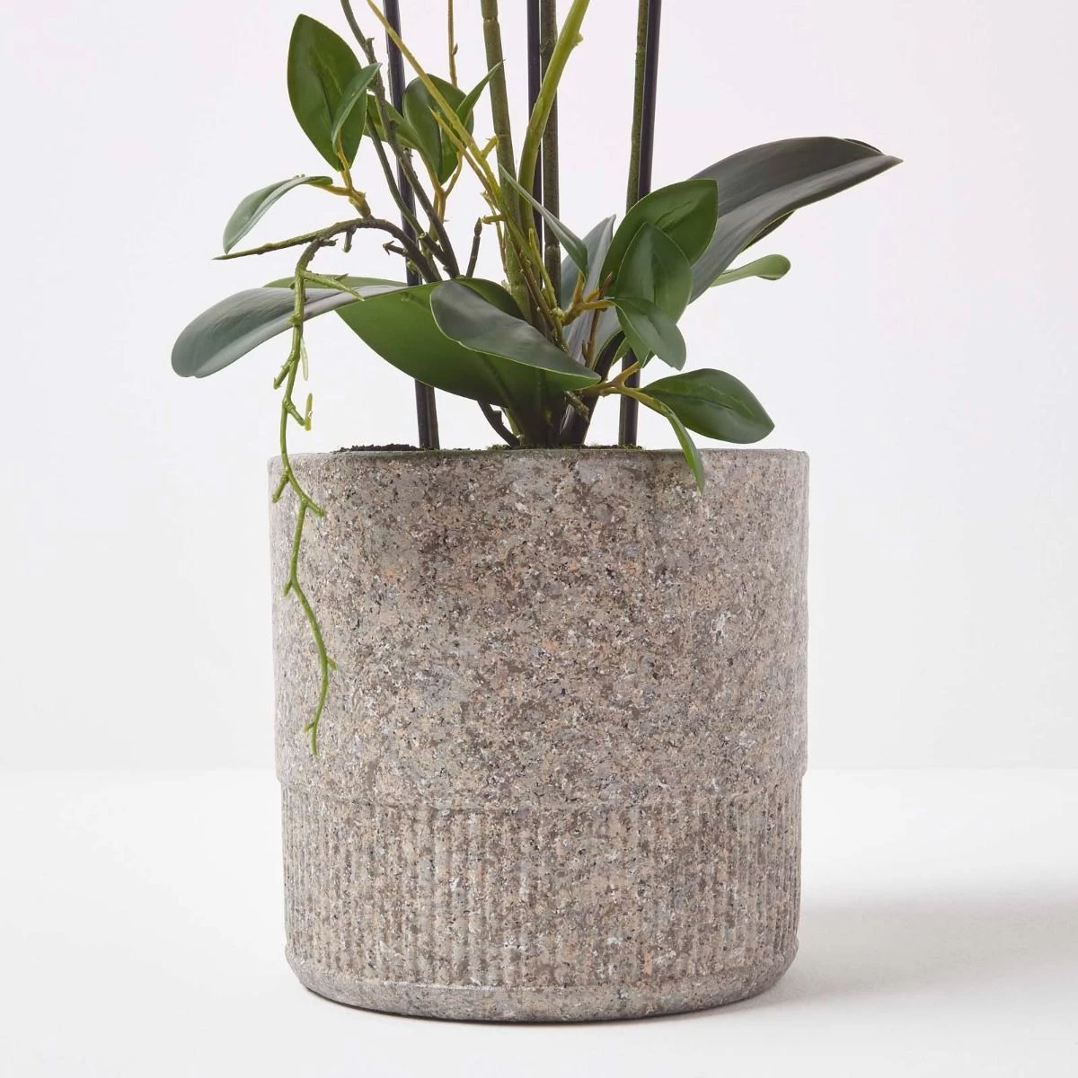 Measuring 82 cm tall, handcrafted by skilled experts and UV treated to ensure lasting colour, this faux plant looks both realistic and lifelike. Sat in a textured light grey cement pot for added style to rustic interiors, this fake orchid plant is easy to care for, simply dust with a damp cloth regularly and keep out of direct sunlight. Mix and match from our extensive range of plants available in a range of colours and sizes to add decoration in your home.