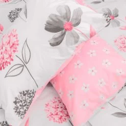 Bring some delicate design to your bedroom with this floral duvet cover set from Homescapes in soft pink, white and grey. This duvet cover features pink and grey flowers on a clean white background for a soft and comfortable feel.
