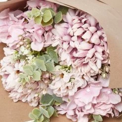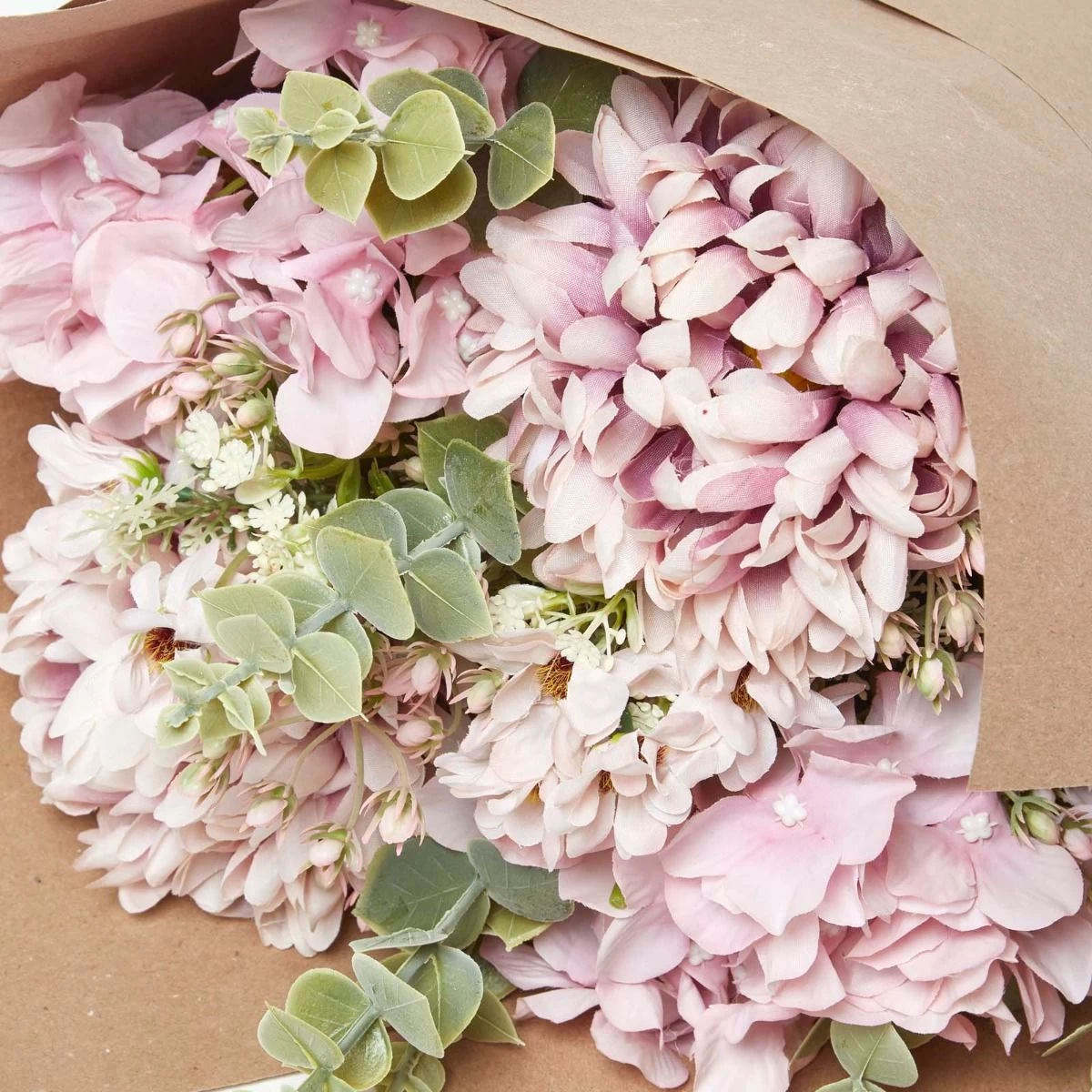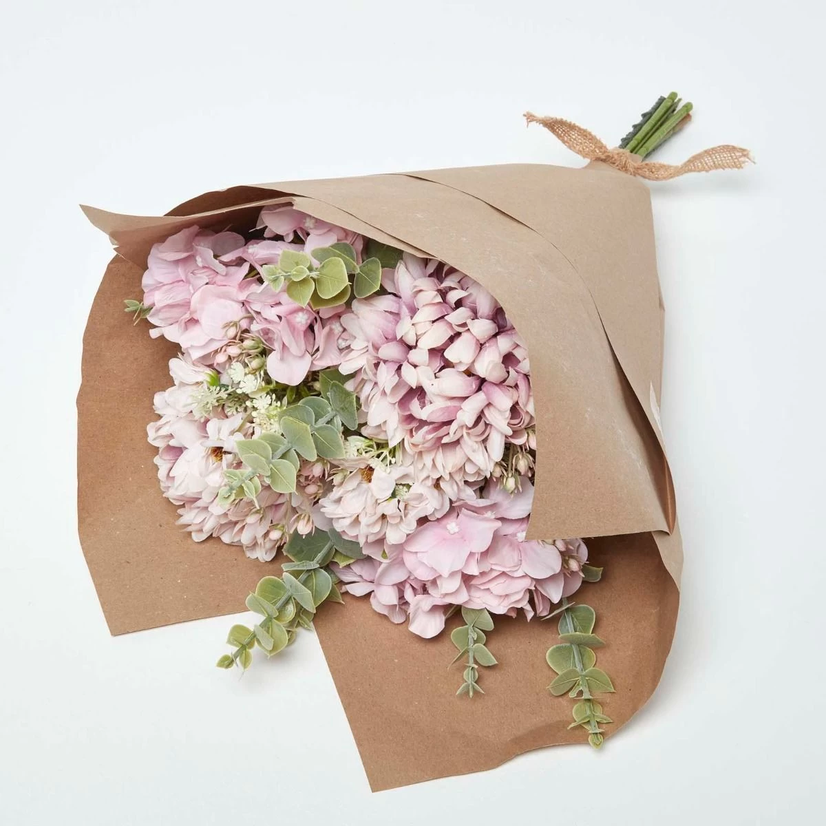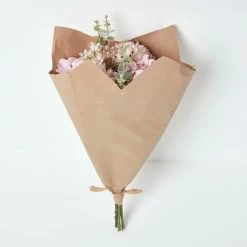 The ideal Mother’s Day gift or anniversary present, these light pink and white bouquet have been wrapped in eco-friendly brown kraft paper, ready to be presented to your loved one. Each silk-like petal has been handcrafted to be botanically correct, and look life-like when placed in a vase.
