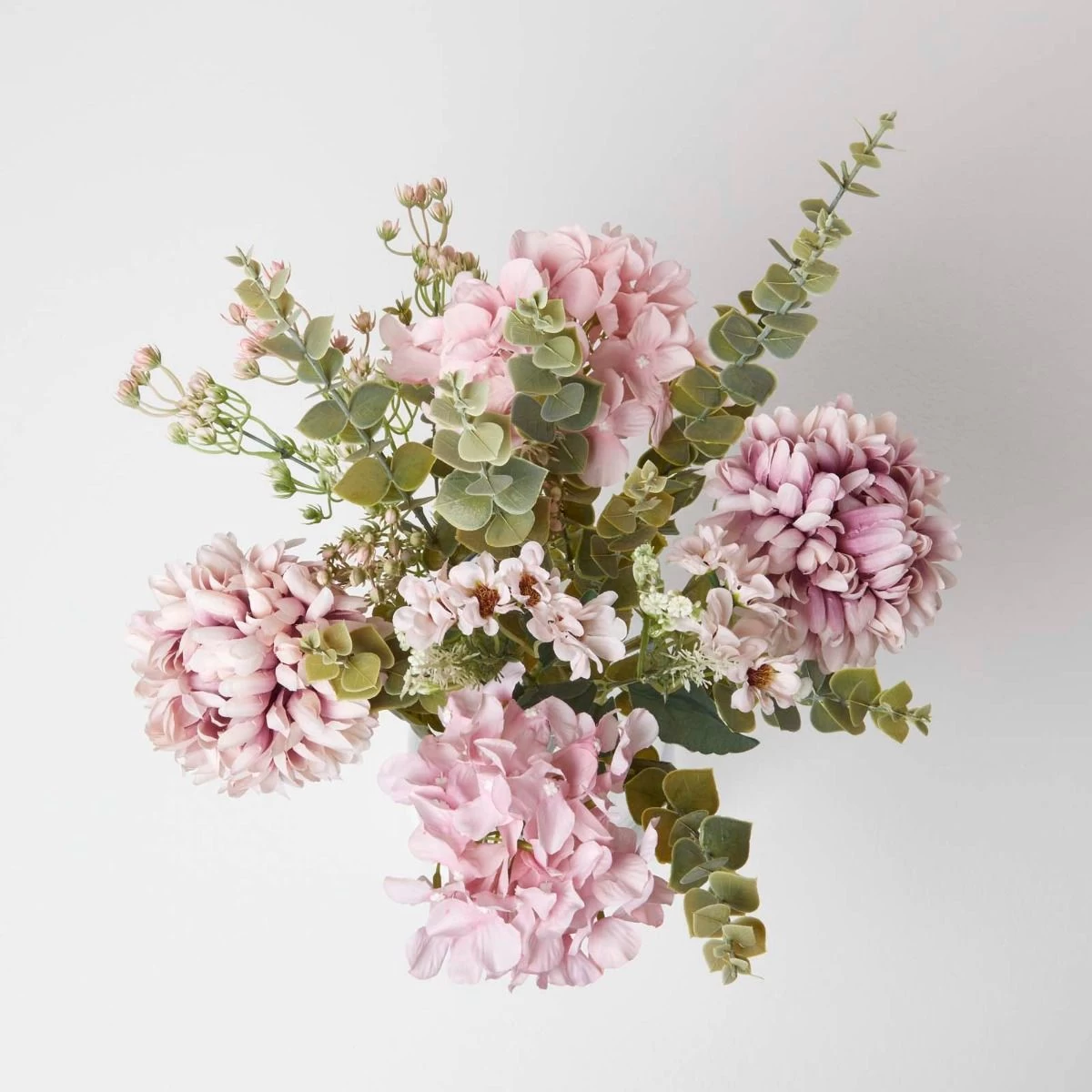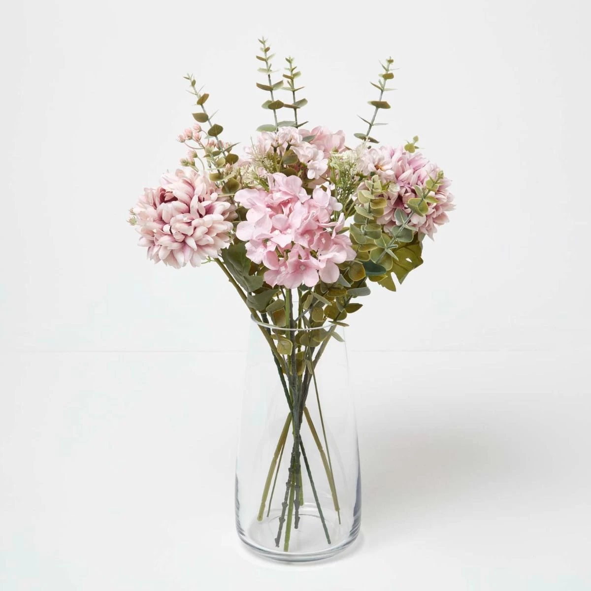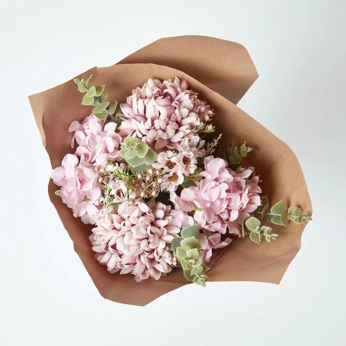 Artificial pink flower bouquet by Homescapes. In shades of blush pink and white, each pigmented faux flower has been made with silk-like material.