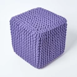 Purple Cube Cotton Knitted Pouffe Footstool