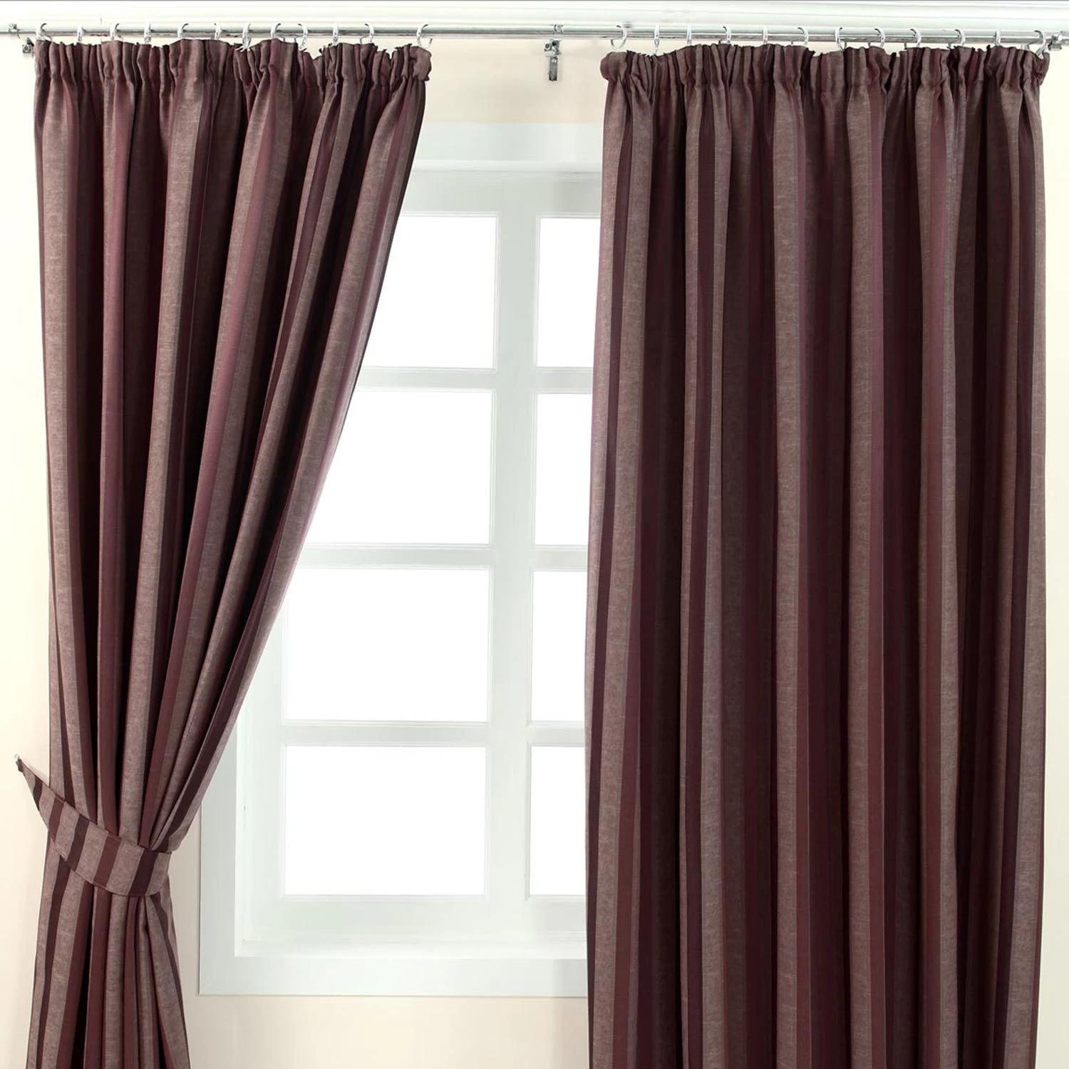 Available in nine standard sizes, these sumptuous, pencil pleat curtains feature a bold stripe pattern in purple hues, ideal for adding colour to a room.