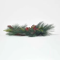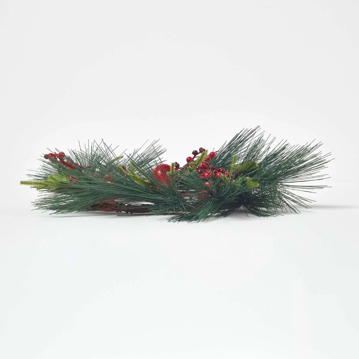 Green and red artificial Christmas wreath that looks just like the real thing, this colourful Christmas decoration will add a touch of festive cheer to any home. Easy to hang, it is perfect for decorating doors around the home, styled above the fire place or used as a Christmas centrepiece on your dining table.