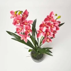 Crafted from silk-like polyester for botanical accuracy, this vibrant orchid plant is perfect for adding style to windowsills or side tables to brighten up living spaces. This delicate fake orchid plant features stunning red artificial orchid flowers with handcrafted petals making them look realistic and stylish. With lifelike stems, soil and leaves this large artificial orchid can be arranged to your liking and is just like the real thing.
