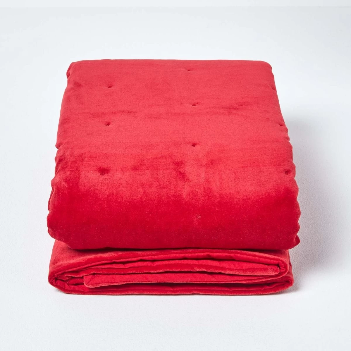 For luxury style, Homescapes’ quilted bed throw has been woven from 100% cotton velvet and comes in this deep red colour. Cotton velvet is incredibly soft and creates a more luxurious and subdued tone to polyester velvet, meaning this red throw will give your home an elegant look. For extra thickness, our velvet throw has been quilted with polyester fibre and finished with handstitched dots for a contemporary look.