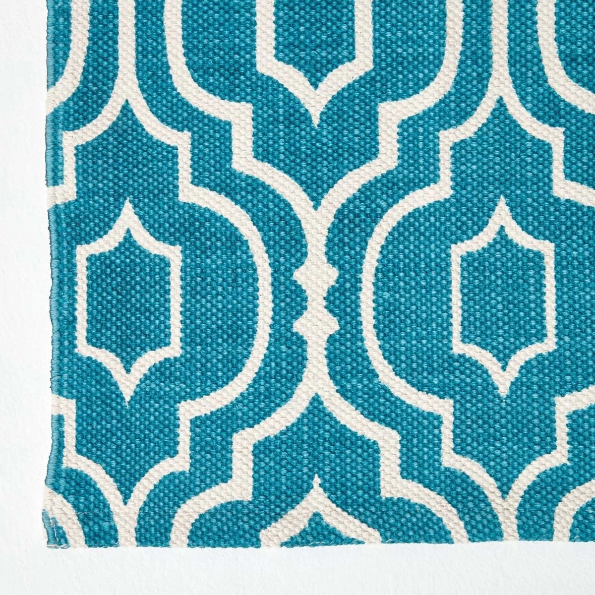 Homescapes Riga rugs are woven from 100% cotton on traditional handlooms for an authentic look. The geometric pattern is printed onto the woven rug for a bold effect, and the Riga rug can also be purchased in grey and red from the Homescapes website. Available in four sizes including a hall runner.