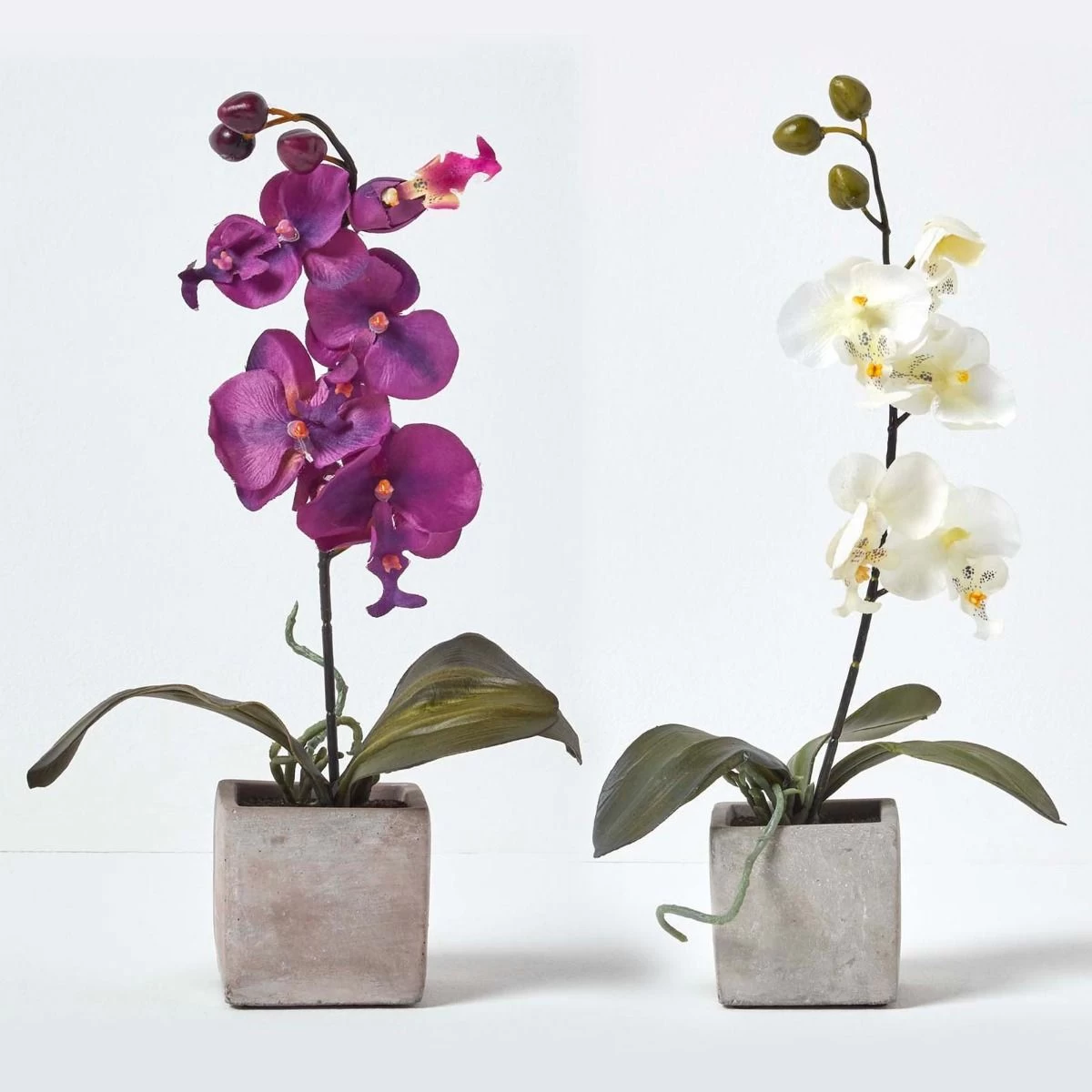 Homescapes artificial cerise and white orchid flower pair. Homescapes has carefully selected a range of replica plants to complement any style of interior.