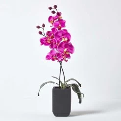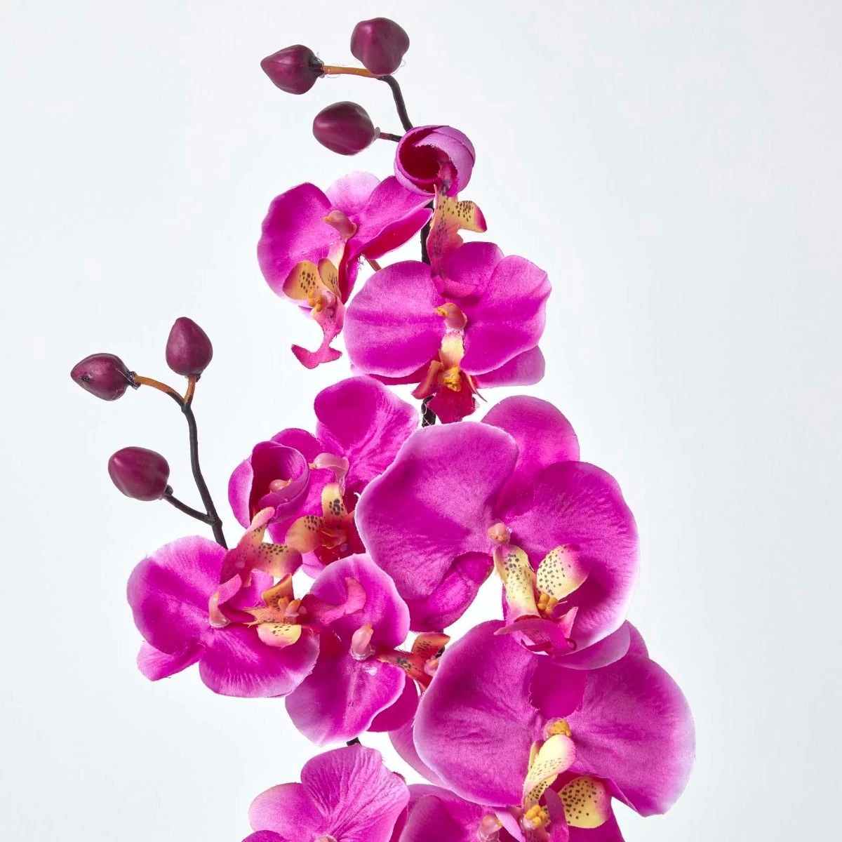 Homescapes artificial orchid plants are expertly crafted by hand. The soft petals are made from a silk-like polyester that is UV resistant, so the colours will not fade over time.