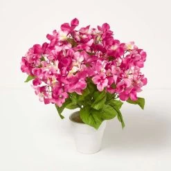 A simple and sophisticated arrangement, these botanically correct Hydrangea fake flowers have been hand crafted and dyed. Ideal as a gift or simply to brighten up the home, these potted fake hydrangeas are great for all occasions.