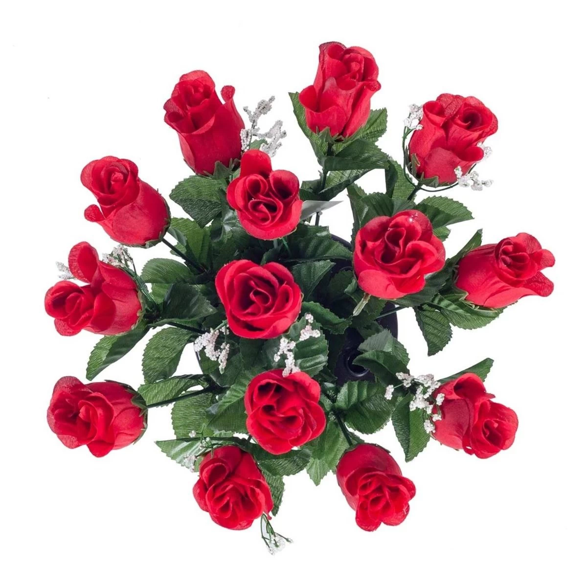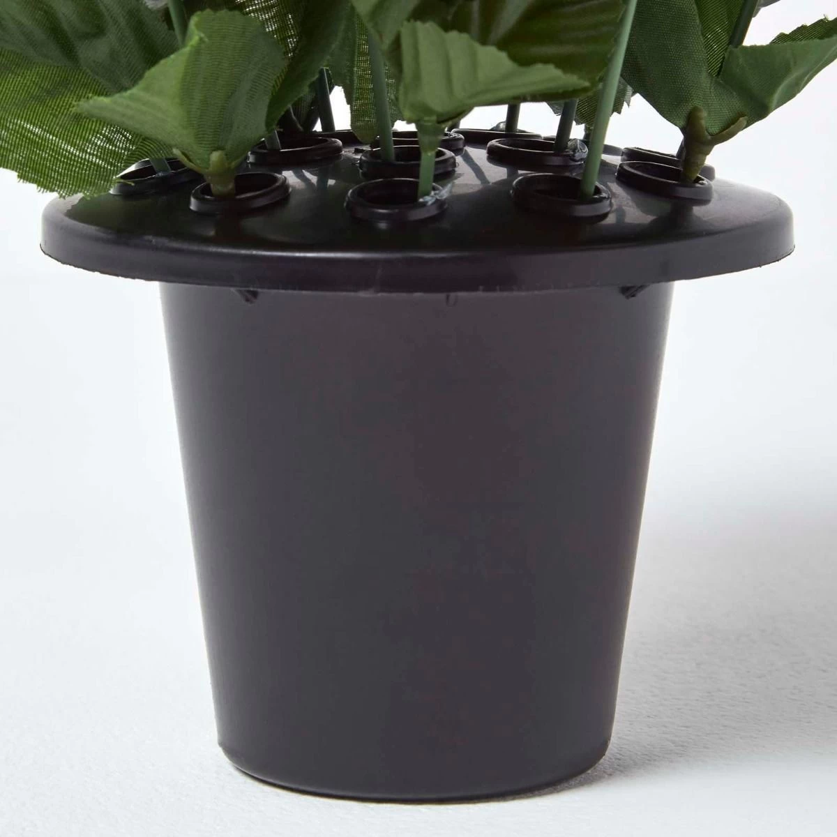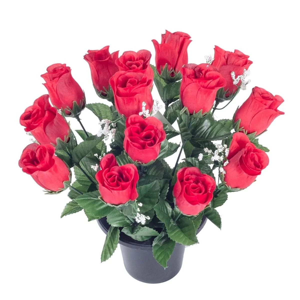 Designed as a grave pot, each plant measures approximately 28 cm. Having been crafted by hand, each stem, flower and petal looks incredibly lifelike and realistic. Requiring no maintenance, simply wipe off dirt with a damp cloth as needed.