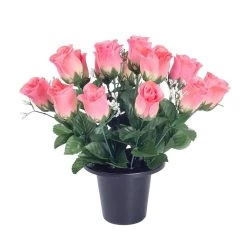 Arranged with delicate gypsophila, this artificial grave pot features roses in several striking colours. Idea for adding some colour to the grave of a loved one, each stem can be rearranged within the pot to however you see fit.