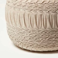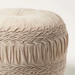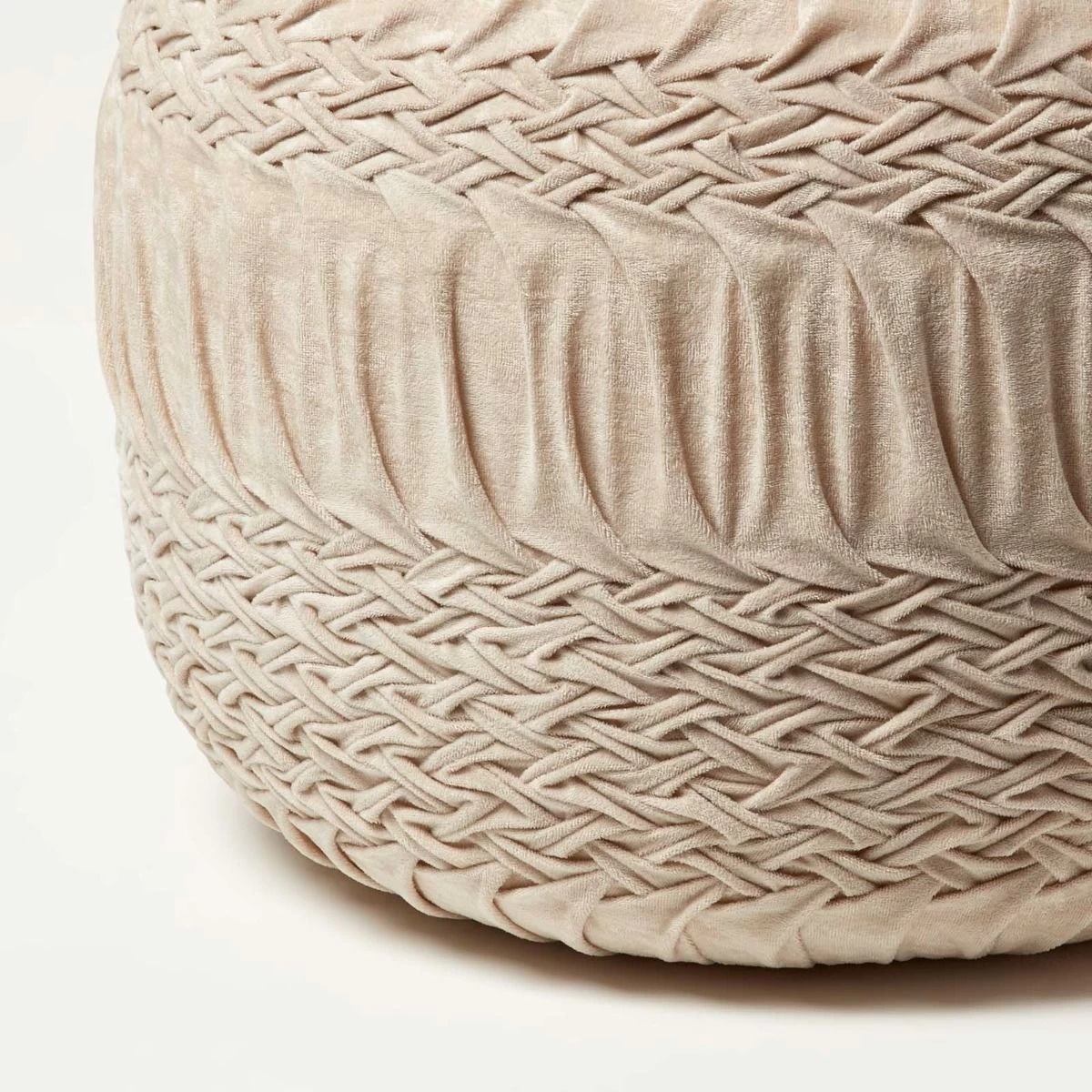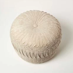A timeless addition to any home, this neutral cream pouffe combines the luxury feel of velvet with a must-have colour. Handcrafted and pleated around the edge, the unique criss-cross pin tuck design is finished with an oversized button on the top and base. Pair with Homescapes’ matching cream Sofia cushion for a complementing look.
