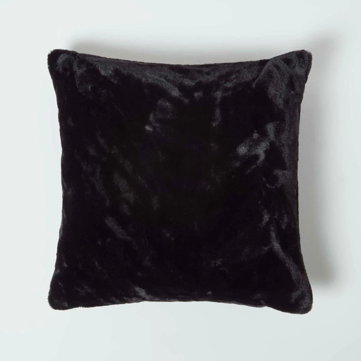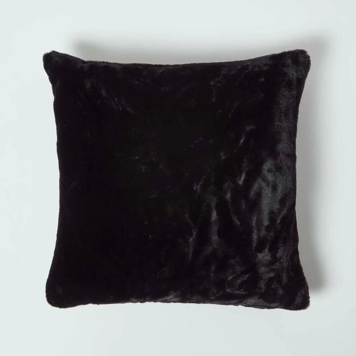 Black Velvet Cushion by Homescapes. A timeless addition to any home, this faux fur cushion is a beautiful addition to any living space.