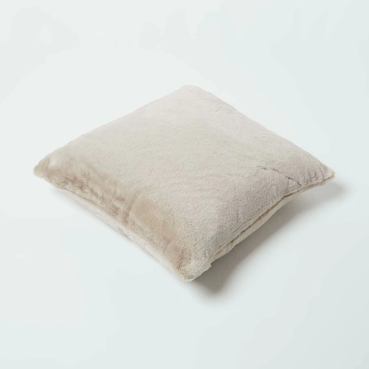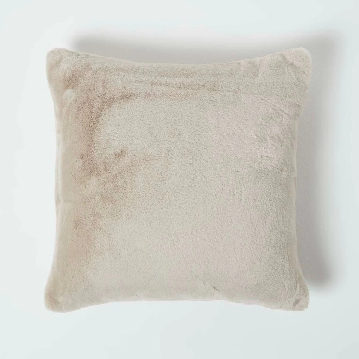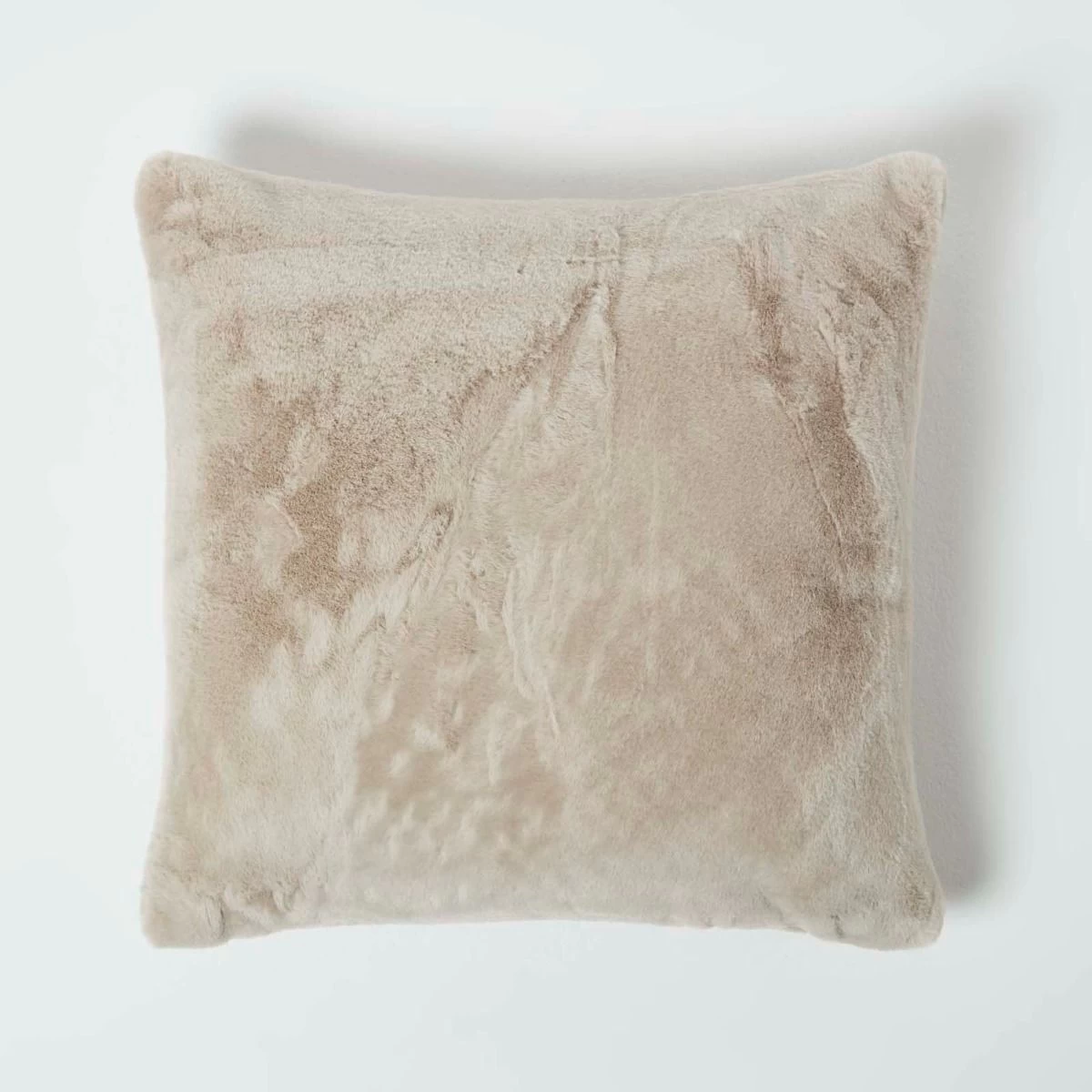Taupe Velvet Cushion by Homescapes. A timeless addition to any home, this faux fur cushion is a beautiful addition to any living space.