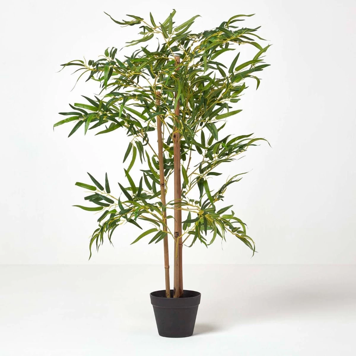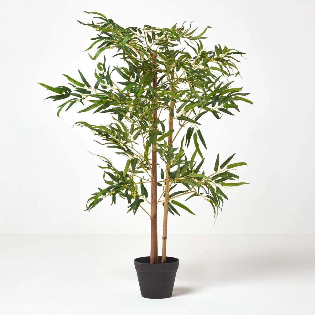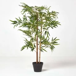 Oriental artificial bamboo tree from Homescapes measuring approximately 100 cm. This faux plant features three stalks of bamboo to represent happiness, wealth and longevity.