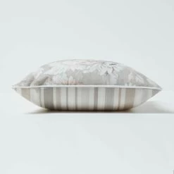 A grey and white striped cushion on the reverse, this versatile cushion comes with a hidden zip closure to make cleaning easy and measures 45 x 45cm. An ideal addition to any vintage or cottagecore interior, this plush floral cushion is spot clean only.