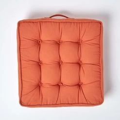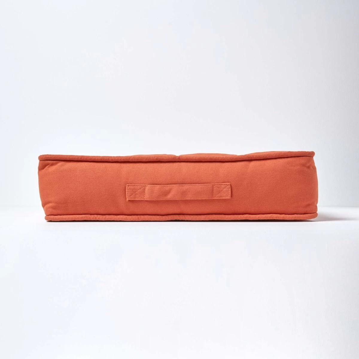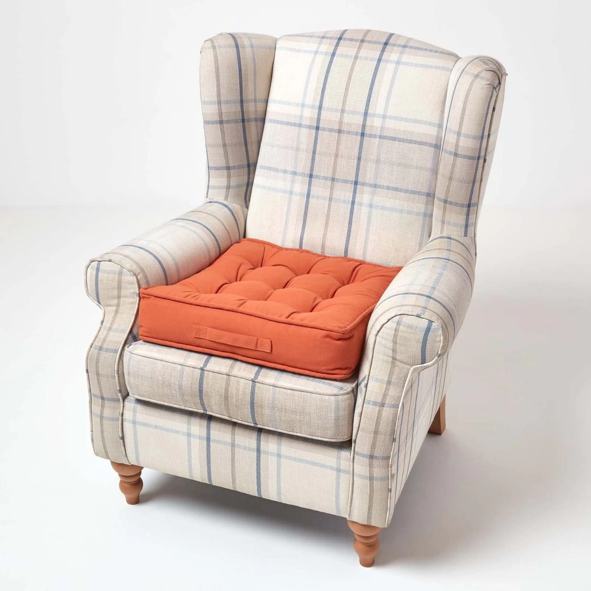 Terracotta cotton armchair booster cushion, supportive armchair cushion with thick foam filling and carry handle provides lasting support whilst sitting.