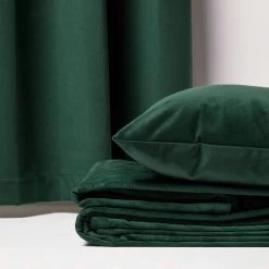 Heavy weighted to ensure the perfect drape, these blackout velvet curtains will frame windows and doors perfectly and feature an eyelet header, suitable for use on a curtain pole. A textured curtain in a rich dark green colour, they will complement both modern and traditional styles and can be paired with similar earthy tones as well as bold colours to create your perfect look. Available in 6 standard sizes, this blackout curtain collection is accompanied by a range of coordinating throws and cushions available in a range of sizes.
