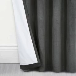 Super soft and thick grey blackout velvet curtains with 100% blackout lining. Crafted from exclusive 3-pass coating technology, these genuine blackout curtains block out sunlight and artificial lighting, keeping your room pitch black, ensuring complete privacy and allowing you to get the perfect night’s rest. Comprising of a soft and textured velvet fabric, blackout coating and a flocking layer this patented technology is unlike any other and will provide genuine blackout throughout the year. A versatile curtain that can be used in living rooms and bedrooms, these velvet curtains also possess outstanding thermal qualities, protecting against heat loss and heat gain and reducing energy costs during colder months.
