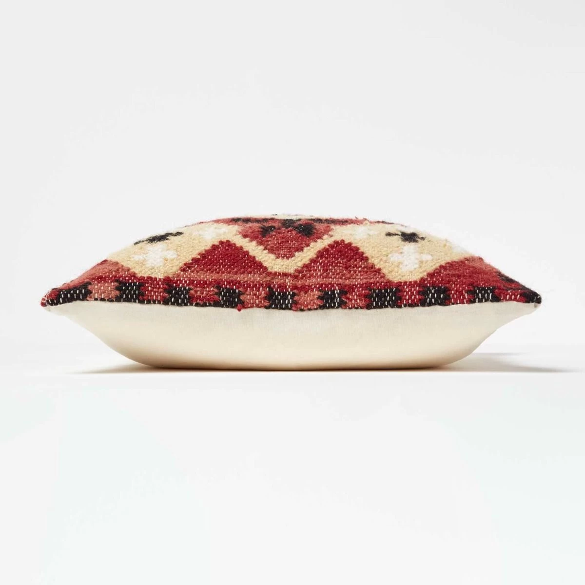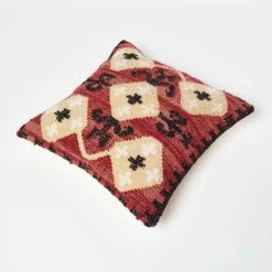Handcrafted colourful kilim cushion, this red, yellow and black textured cushion is handwoven on traditional handlooms and will add a splash of colour to your home. Measuring 45 x 45 cm, this decorative scatter cushion is generously filled with a hypoallergenic super microfibre cushion insert that will remain plump over time