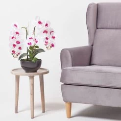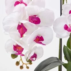 Crafted from silk-like polyester for botanical accuracy, this artificial white orchid is perfect for adding style to hallways or offices to brighten up living spaces. Similar to a white dendrobium orchid, this plant features stunning white artificial orchid flowers which have a pink petal centre giving them a realistic and stylish look. With lifelike stems, soil and leaves this artificial white orchid can be arranged to your liking and is just like the real thing.