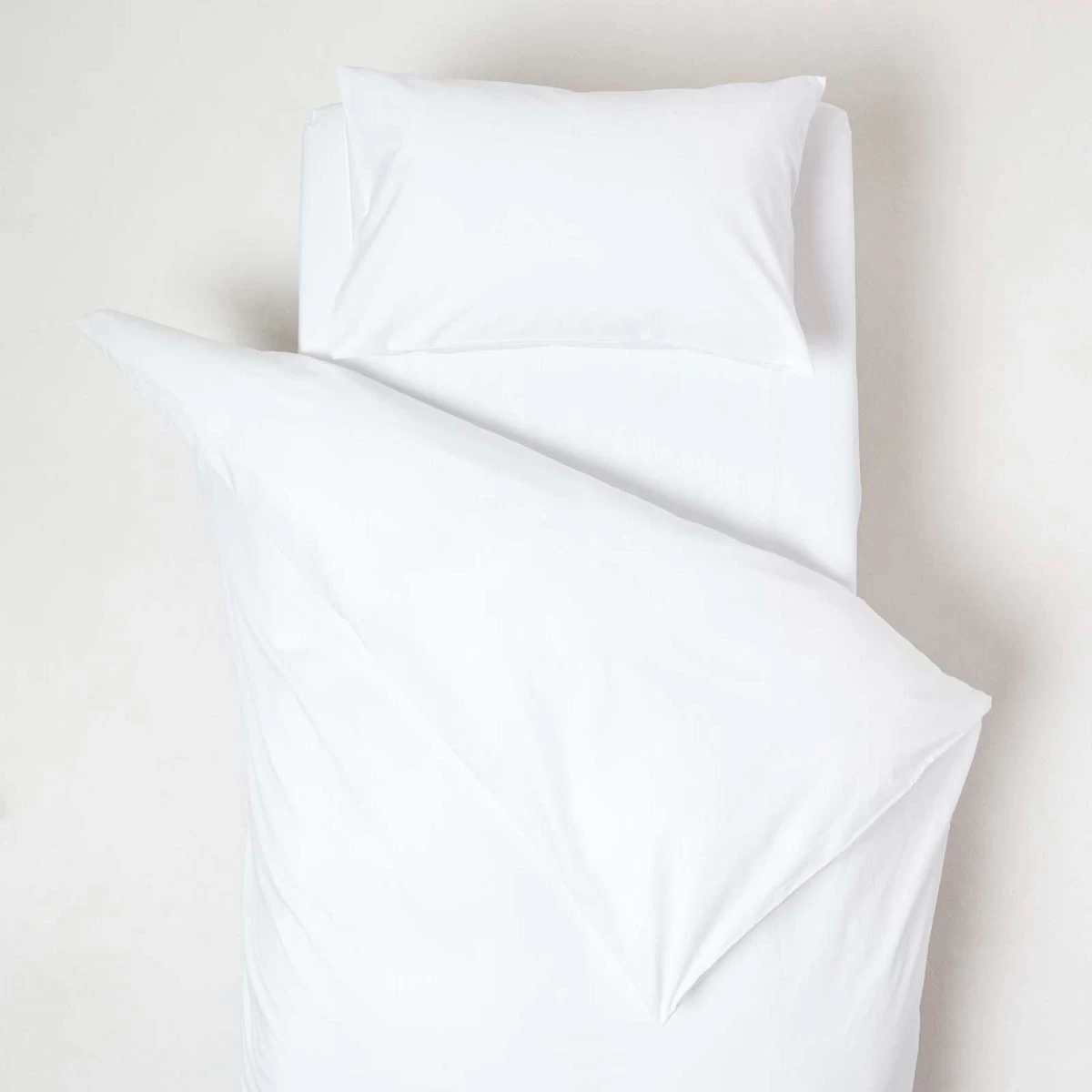 Super soft 200 thread count 100% cotton white toddler duvet set, hypoallergenic cot bed duvet cover and pillowcase set plain cotton children’s bedding for toddler size beds.
