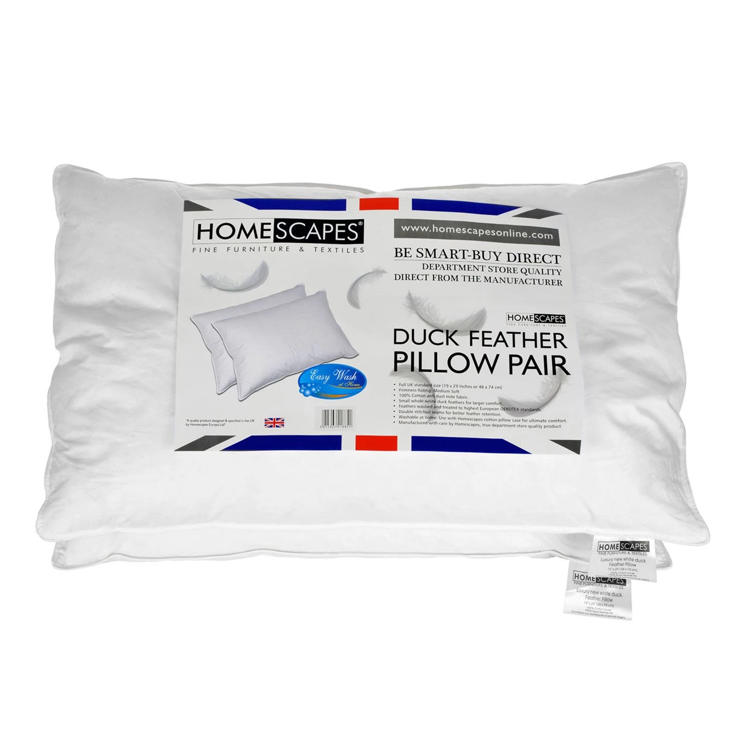 Please note that Homescapes vacuum pack these pillows in an effort to reduce plastic usage and make delivery easier. Simply fluff up the pillows, give them a shake and allow a few hours before sleeping on them.