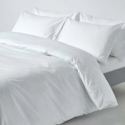 Available in single, double, king size and super king size, all of our white duvet covers come with matching housewife pillow cases (one pillowcase with single sizes). *This fabric has been commissioned by using single ply finely combed pure cotton yarns to provide a higher density fresh and crisp percale. These single ply yarns, even though have 200 threads per square inch of weaving, the resultant fabric is far superior than most multiply yarn fabrics with an alleged 400 thread count. Our striking duvet and pillow cover set is hypoallergenic and anti-dust mite due to the dense cotton weave.